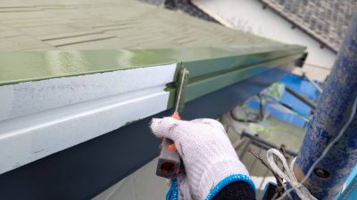 屋根板金の下塗り・中塗り・上塗りの工程です。
