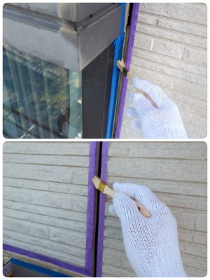 既存シーリングを撤去し、プライマー塗布して、新しいシーリングを打替えます。