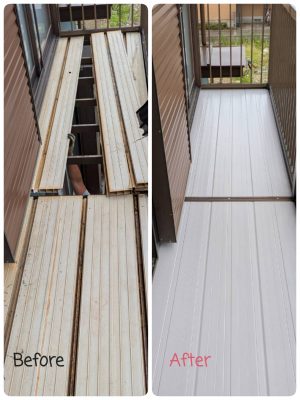 新しくベランダを設置すると高額になるので、既存のパネルを剥がし掃除して、新しいパネルにすることをご提案しました。